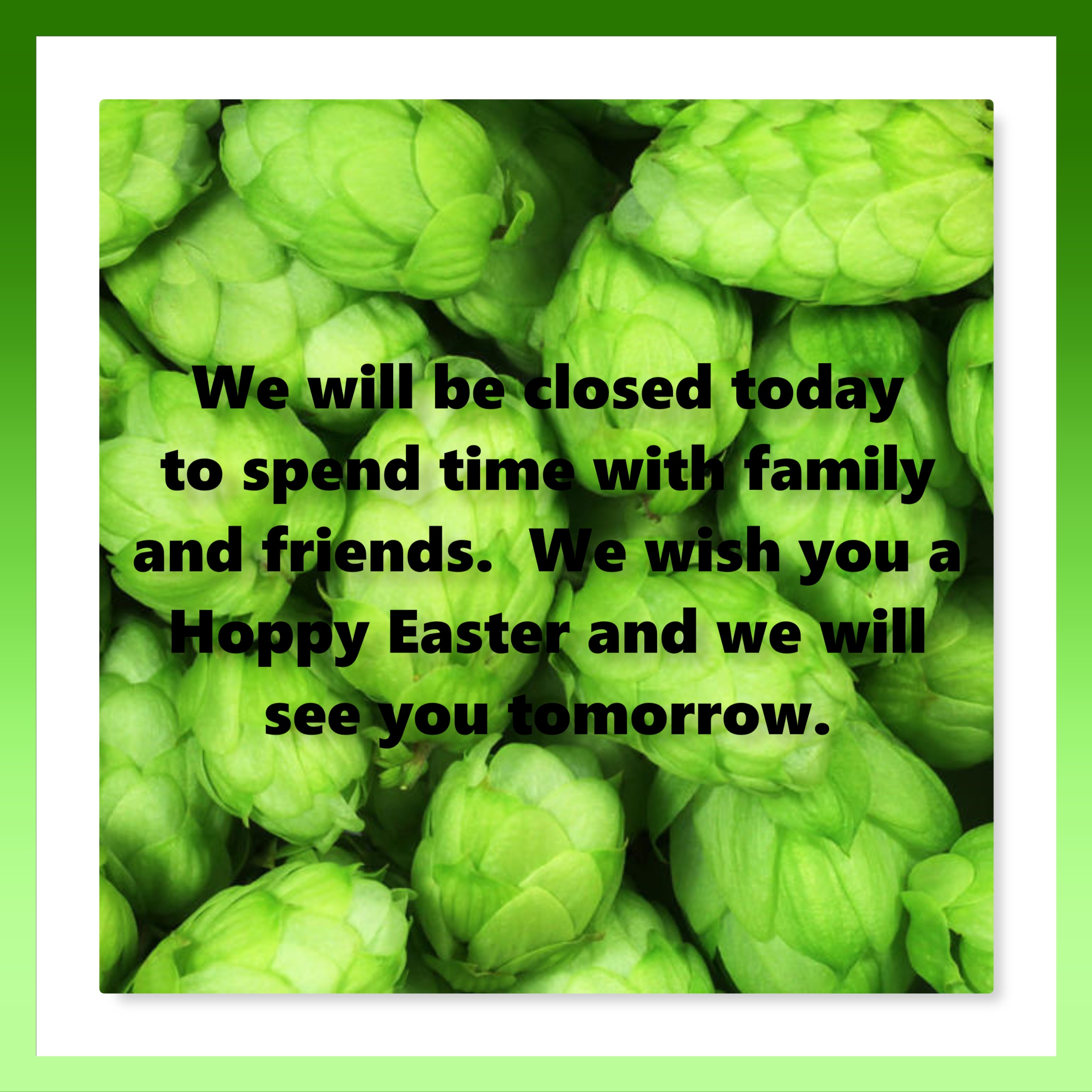 We will be closed for Easter Sunday to spend time with our families and friends. We will resume normal business hours on Monday April 13.
