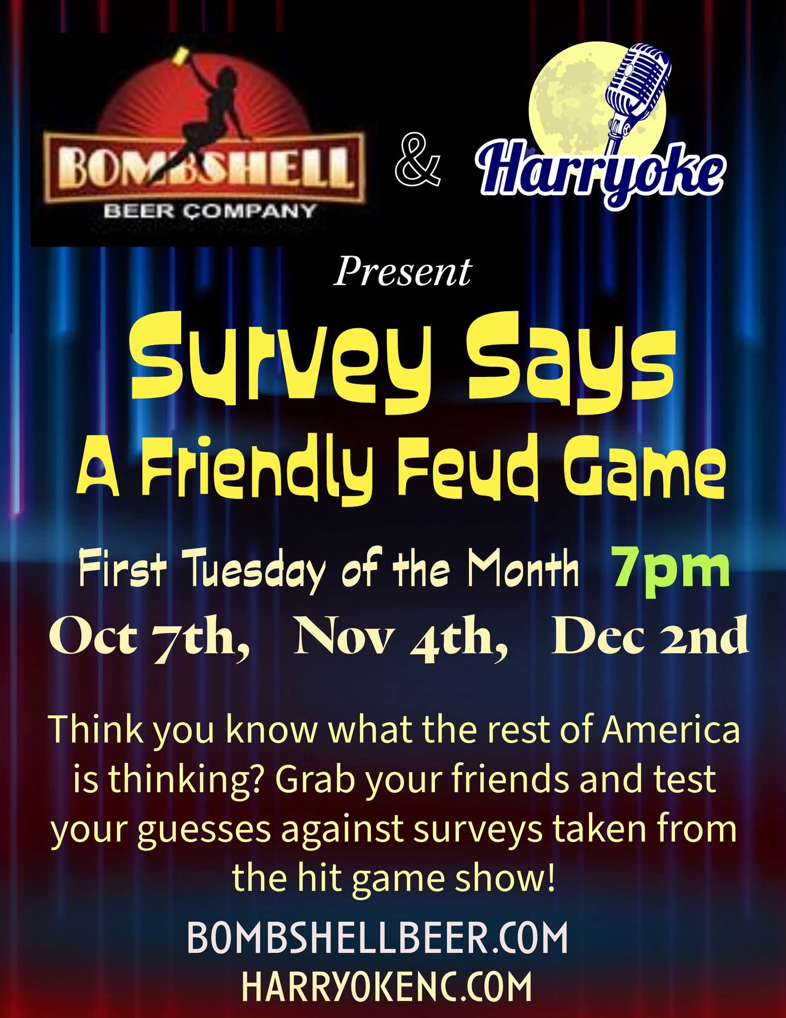 Here is the Bombshell Beer Company calendar of events! We do our best to keep it up to date and accurate, but sometimes things change with our food truck partners, our entertainers and the events we're planning to attend.
