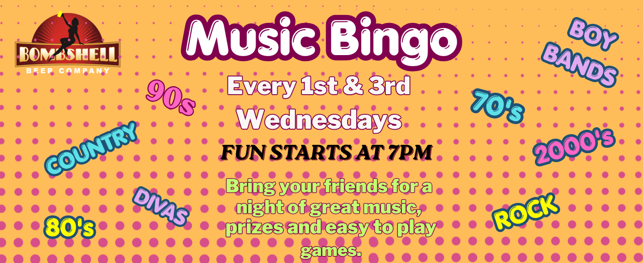 Here is the Bombshell Beer Company calendar of events! We do our best to keep it up to date and accurate, but sometimes things change with our food truck partners, our entertainers and the events we're planning to attend.